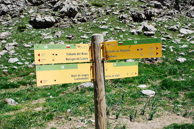 | 2022-05-28 Aisa-tik gora dagoen La Cleta aparkalekutik atera gara. Rigüelo-tik Bernera-ko mendiak ikusten ditugu. Gaurko gure helburuak eskuinerago geratzen dira. Baina horien azpira helduko gara. |